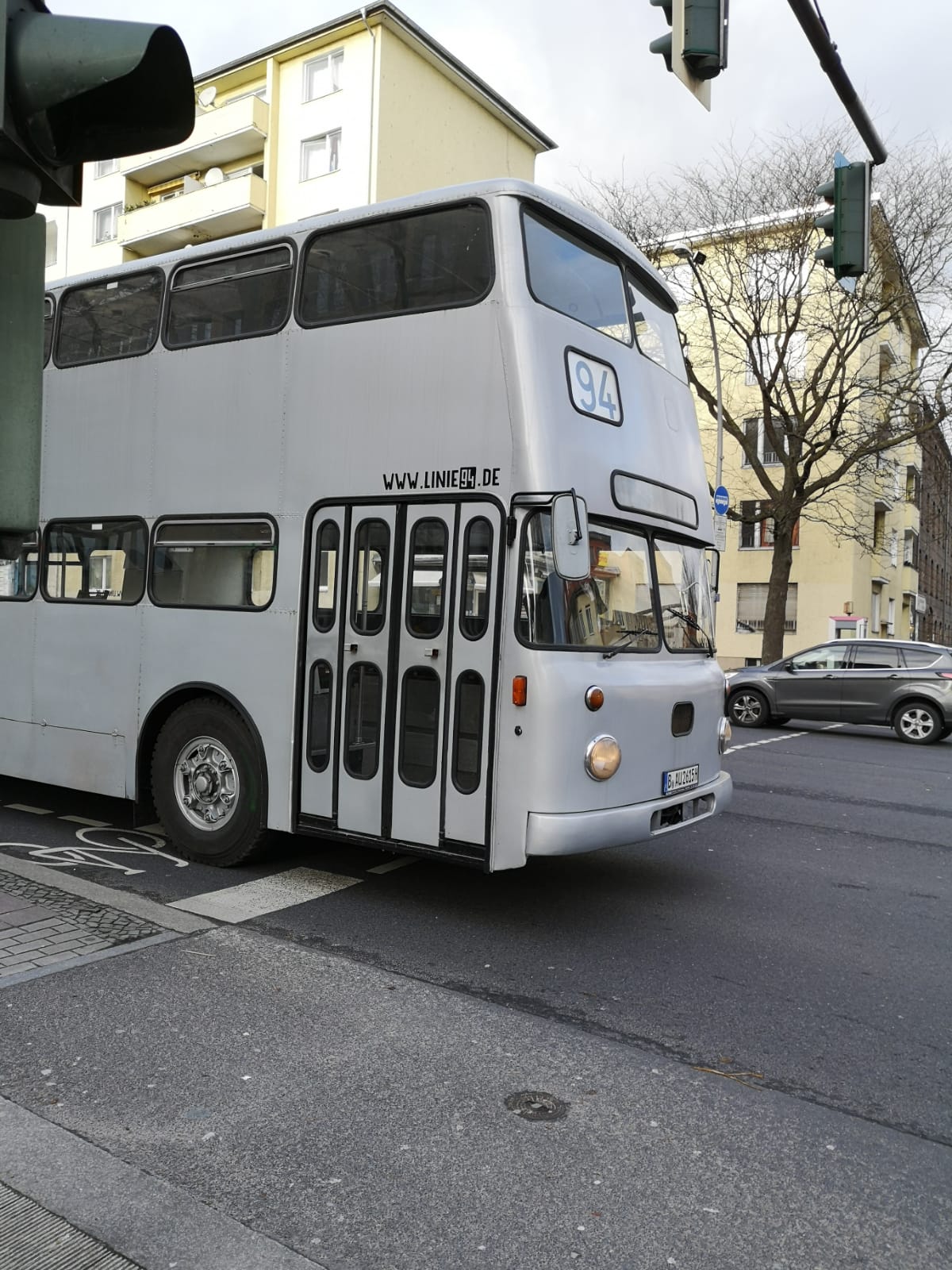 ![]() Ein Bus des Vereins "Linie 94" ein Fahrzeug der Bauart DE 74 der BVG (2616) an der Kreuzung Spandauer Damm/ Sophie-Charlotten-Straße |