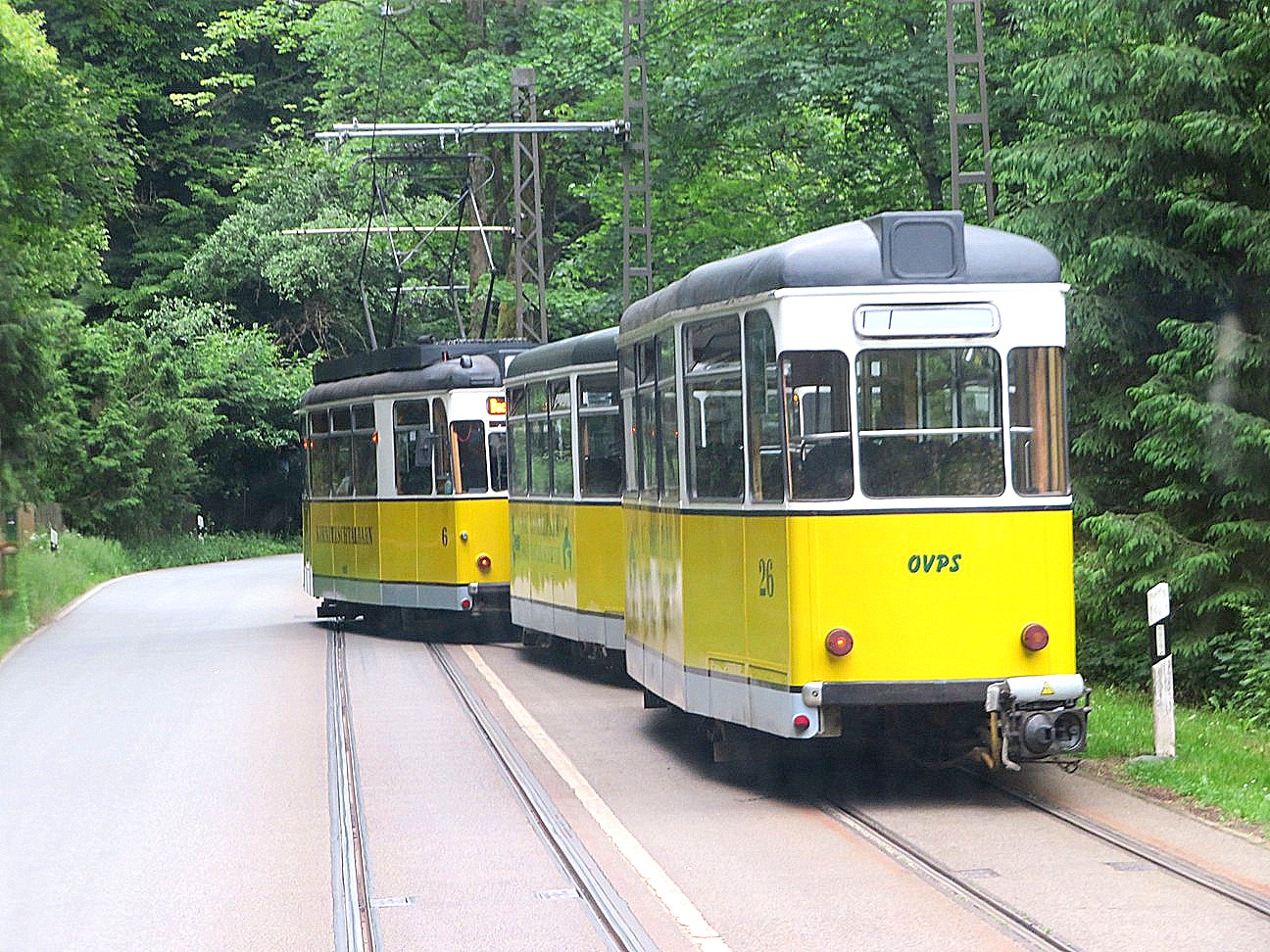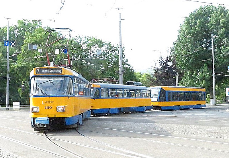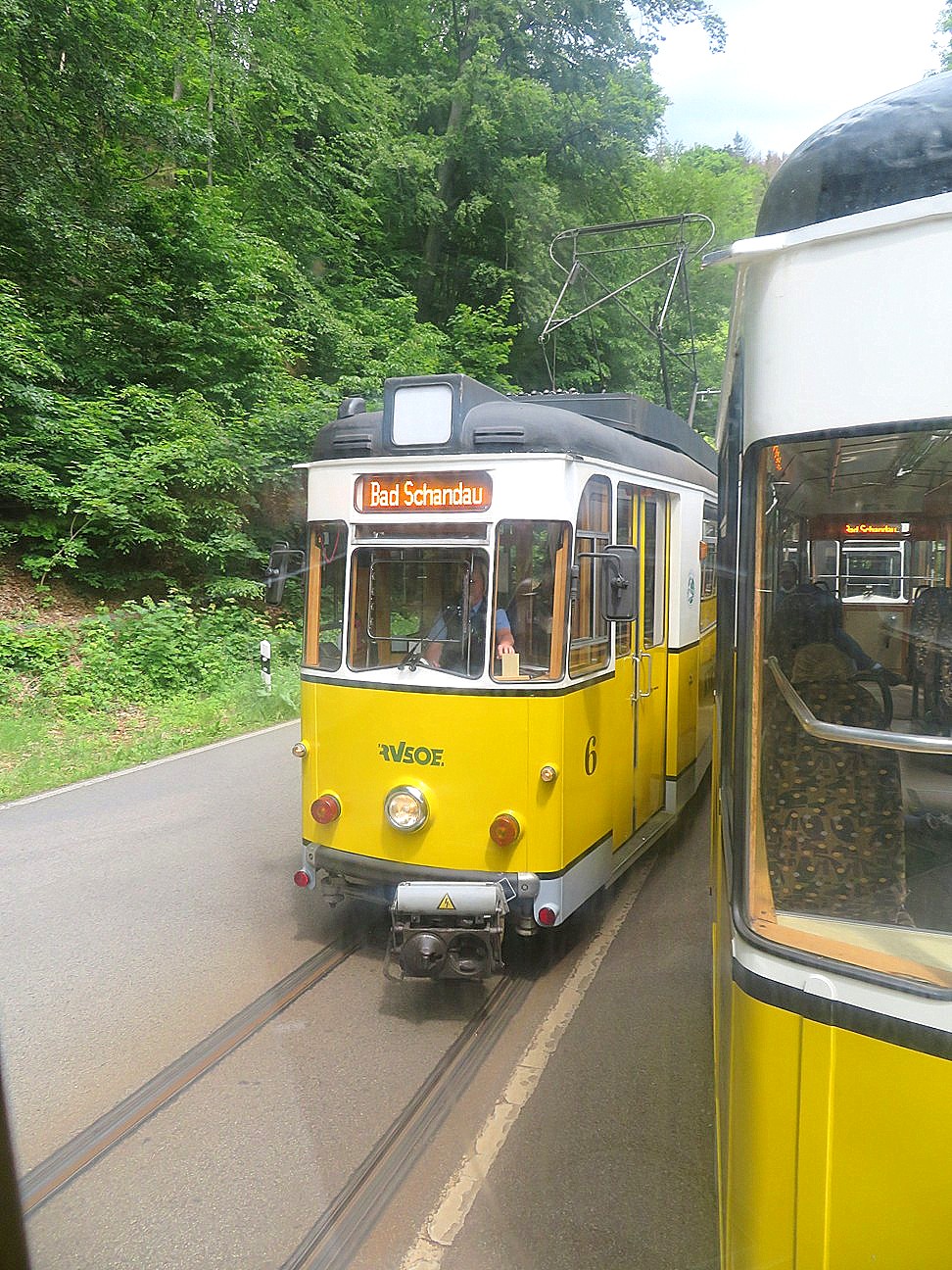 Der Gegenzug mit TW 6 an der Schneiderweiche