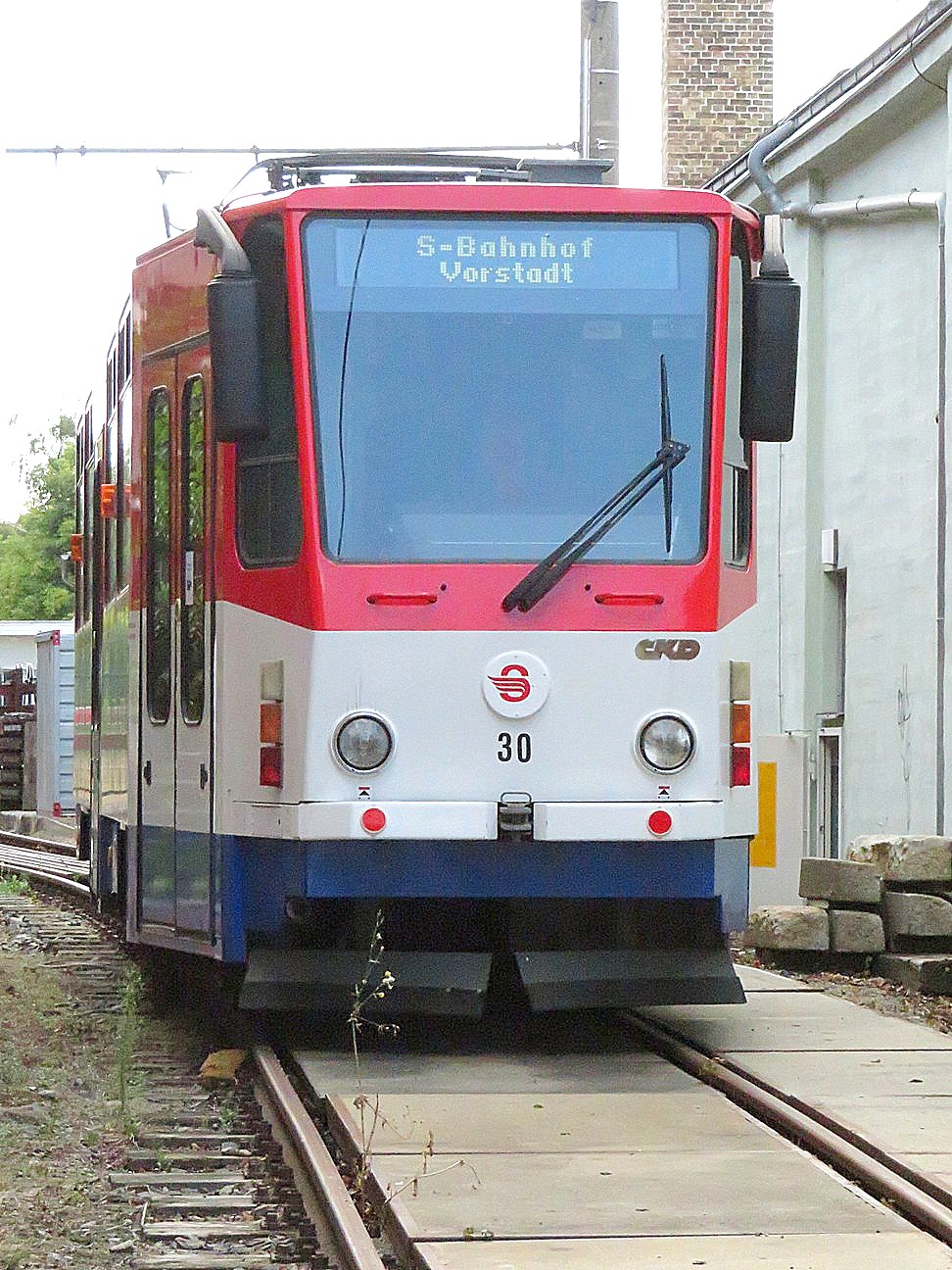 ![]() TW 30 Herstellerr: CKD Tatra - Typ: T6C5 . 4 achsig - Baujahr: 1998 seit 2003 in Strausberg ex New Orleans |