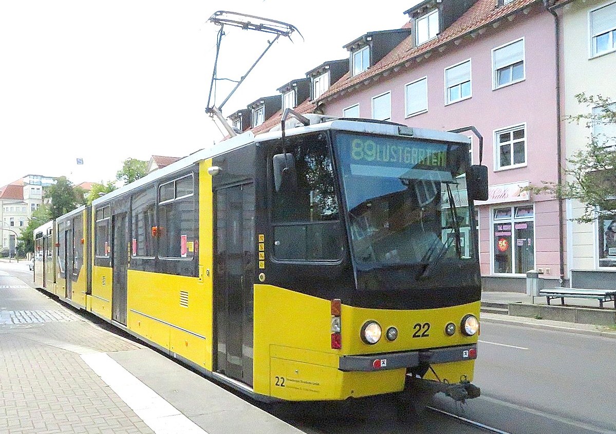 ![]() TW 22 Hersteller: CKD Prag - Typ: Tatra - KT8D5 - 8-achsig - Baujahr:1989 in Strausberg seit1995 Gelenkwagen, ex Košice 503, 2014 modernisiert zum KT8D5.RN2S, seither mit niederflurigem Mittelteil |