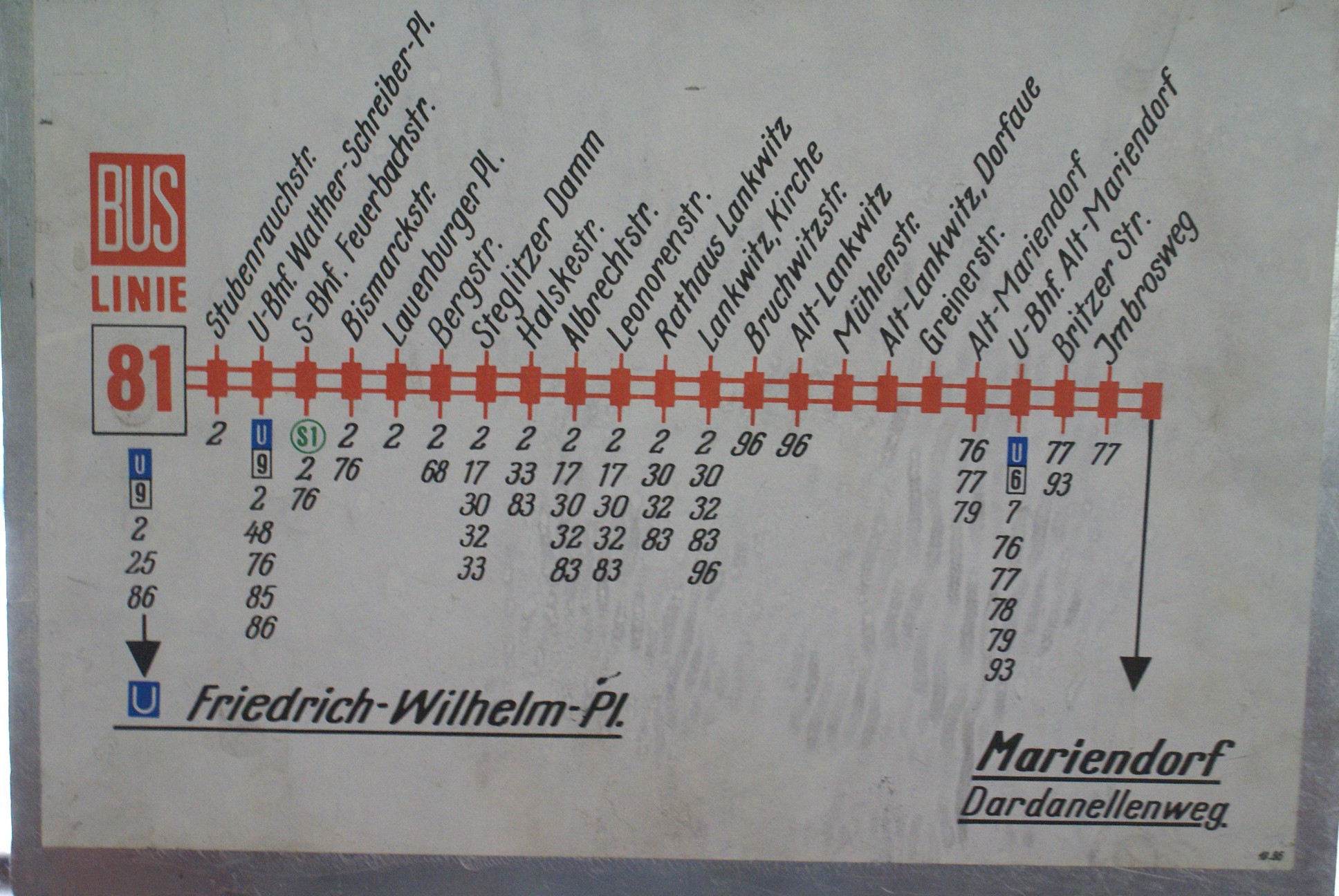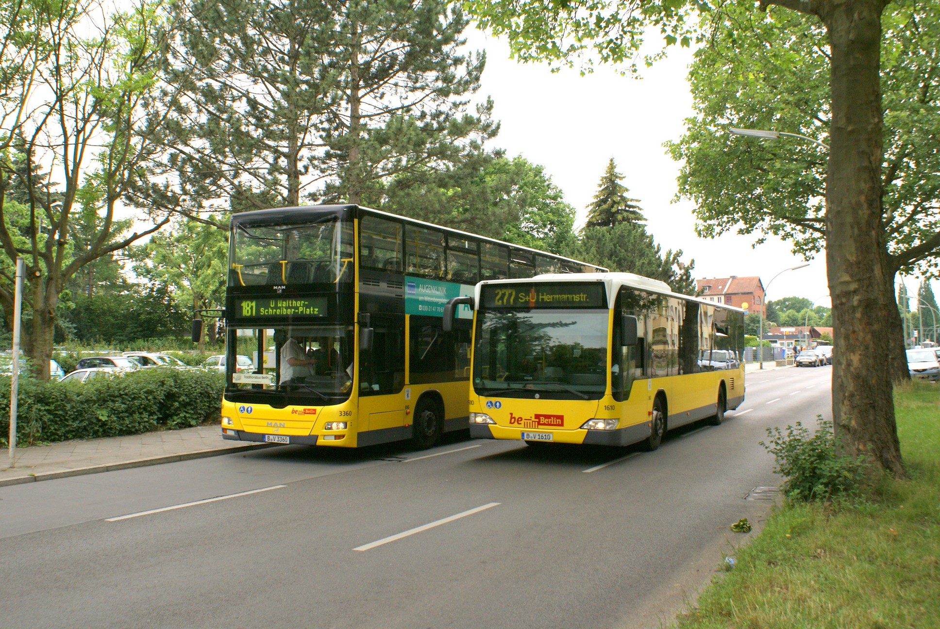 Wagen 2100 der ATB am Walther-Schreiber-Platz, im Hintergrund ist das Schloßstraßen- Center, zur Einsatzzeit der Fahrzeugtype DE befand sich an dieser Stelle noch das Hertie Kaufhaus (1953 unter dem Namen Held eröffnet). Oben ein VDL Citea (Wagen 2347) als X 76 nach Lichtenrade (Nahariyastr.) und unten ein Solaris (Wagen 4161) als M76 zum S- Bhf. Lichtenrade MAN Lion's City DD (Wagen 3116) eingesetzt auf der Linie 181 Begegnung mit Wagen 2626 in der Bismarckstr. An der Haltestelle Albrechstr./Munsterdamm (oben Wagen 1794 u. unten 3178) Begegnung mit 2100 in der Leonorenstr. Wagen 2437 am U-Bhf. Alt-Mariendorf (dem südlichen Ende der U 6) Ein Zug der Baureihe Baureihe F 87 - Gebaut 1986/87 - Anzahl: 21 Einheiten bestehend aus 42 Wagen - Wagennummern: 2802/2803 - 2842/2843 Wagen 3680 am U-Bhf. Alt- Mariendorf 1794 in Alt- Mariendorf Reißeckstr./Mariendorfer Damm Wagen 2626 an der Endhaltestelle Dardanellen Weg Wagen 1242 in der Str. Alt-Mariendorf Wagen 1610 (Mercedes Benz Citaro) eingesetzt auf der Linie 277 neben 3360 (ein LionsCity DD der ATB) VDL 2362 und SOLARIS 4288 auf der Keuzung Mariendorfer Damm/Reißeckstr. Wagen 1957 in der Reißeckstr. (kurz hinter der Kreuzung Forddamm) Wagen 1242 hält vor der Ampel am Mariendorfer Damm Und zuletzt nochmal der 2626, weiter ging's dann mit der U 6 bis Friedrichstr., von da mit der S-Bahn bis Brandenburger Tor und mit der U 55 zum Lehrter Stadtbahnhof (frei nach Herrn Mehdorn auch HBF. genannt). Erstens stand der Lehrter unter Denkmalschutz, Zweitens gab es ein Versprechen der Bahn auf Erhalt des Namens und Drittens ist der Hbf., genauso wie Ost- u. Südkreuz (anstelle Papestr.) nur die Umsetzung von Plänen aus Hitler's Zeiten. Es fehlt nur noch die Umbenennung von Gesundbrunnen in Nordkreuz, aber ich denke das ist dann doch nicht machbar! Halt ein gewisser Größenwahn der gewählten Volksvertreter, genau wie die Verlängerung der U 5 (U 55). Wir hatten auch ohne diese Verlängerung ein dichtes Verkehrsnetz in der City- Ost Regionalbahn, S-Bahn, Bus und bis Lehrter verlängerte Straßenbahn und das alles in Ost-/West Richtung parralel auf "wenigen" Metern verlaufend. Und einen Weiterbau über Moabit und Jungfernheide (vorhandene Bahnsteige) zum Flughafen Tegel wird es nicht mehr geben. |