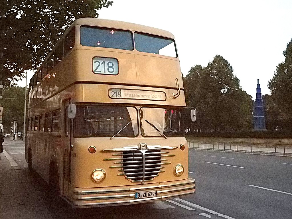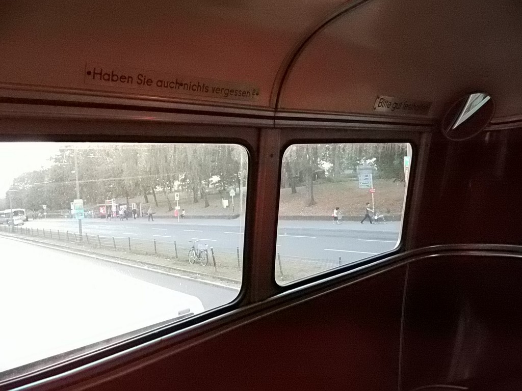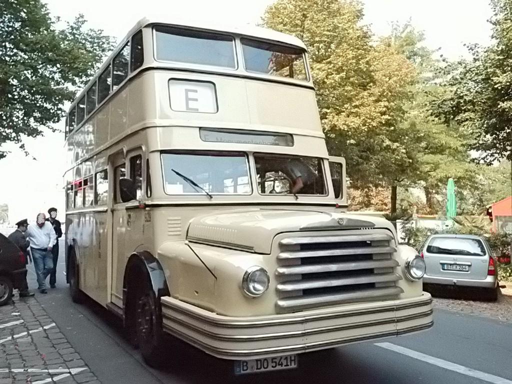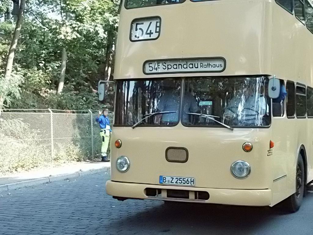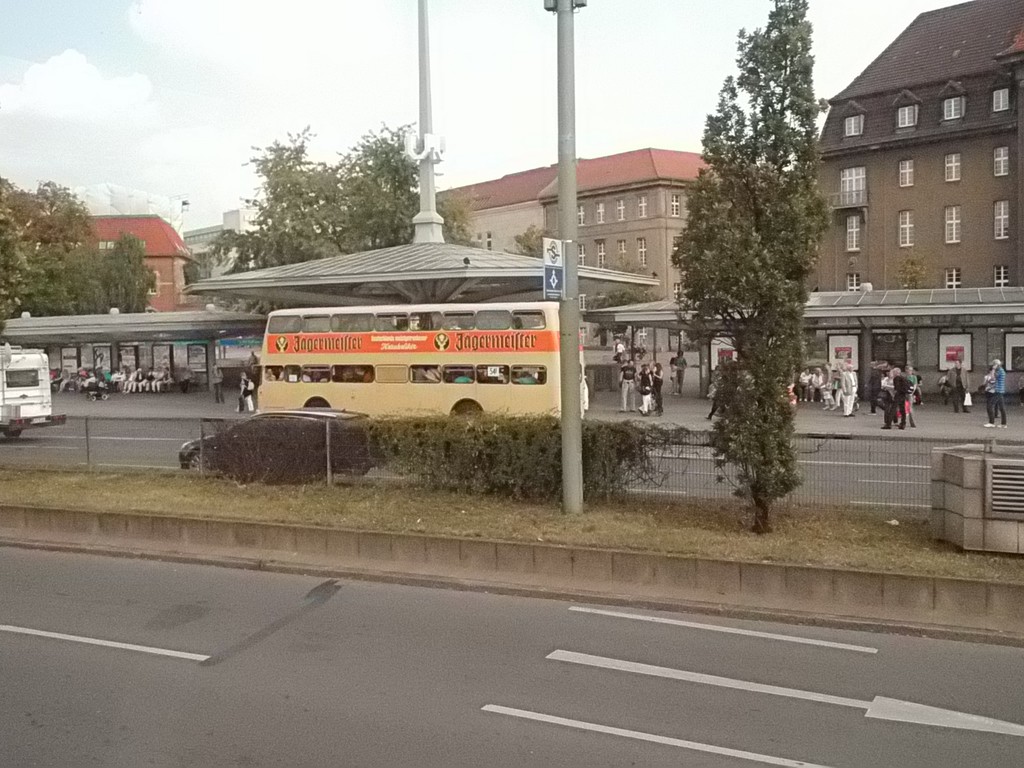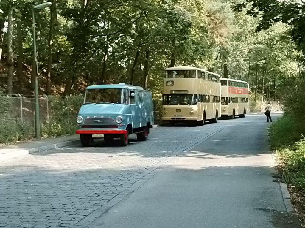 Wieder mal ein Sonntag im September, erst mehrere der Trödelmärkte im Berliner Süden, dann ein Abstecher zur Monumentenstraße. Hier fahren die Traditionsbusse zwischen der Monumentenhalle und dem Verkehrsmuseum, immer Sonntags im September. Standardeindecker vor dem Zugang zur Monumentenhalle des Verkehrsmuseums DO 54 - BVG- Ost Der DO gehört zum Bestand des Denkmlapflegevereins Nahverkehr Preiswertes Sonntagsvergnügen mit Tageskarte AB in Berlin und den Fahrzeugen der BVG, der AG Traditonsbus und Stern und Kreis. Am Bundesplatz begann die Rundfahrt, U 9 bis Berliner Str., U 7 bis Bismarckstr. und mit der U 1 bis Ruhleben. Von da mit dem Bus M45 zum Rathaus Spandau und weiter mit dem 135 zum Luftwaffenmuseum in Gatow . Nur an den Tagen des Flughafenfestes fahren die Busse der AG direkt zwischen Rathaus Spandau und dem Flugplatz über das Kasernengelände, dieser Weg ist sonst nicht zugänglich. Am 07.09.2014 fuhren auch zwischen Ruhleben und Rathaus historische Busse und alles mit normalem Fahrschein. Vom Flugplatz geht es zu Fuß zum Ritterfelddamm und dann mit dem Bus bis Alt- Kladow, jetzt noch ein kleiner Spaziergang und man ist am Schiffsanleger.Von hier geht es mit der F 10 per Schiff nach Wannsee. Von der Anlegestelle sind es nur wenige Schritte bis zum Bhf. Wannsee. Ab hier geht es mit dem 218 und in den Sommermonaten mit einem Bus der AG Traditionsbus zum U- Bhf. Theodor Heuss Platz oder man fährt mit der Bahn wieder in Richtung Innenstadt. Und jetzt noch ein paar Bilder von unserer Tour durch Berlin. Die Hallen des BW Grunewald der Berliner U- Bahn aus dem fahrenden Zug. Eine Gisela im Bhf. Ruhleben. 2556 Am Rathaus Spandau. Mein absoluter Liebling - das Brot war Spitze und ich hab fast 11 Jahre für die Firma gearbeitet. 2329 Büssing DE 1666 3413 Anlegestelle Wannsee - Stern und Kreis Auch der Boden vor einem Bahnhof ist manchmal voller Spannung. D2U |