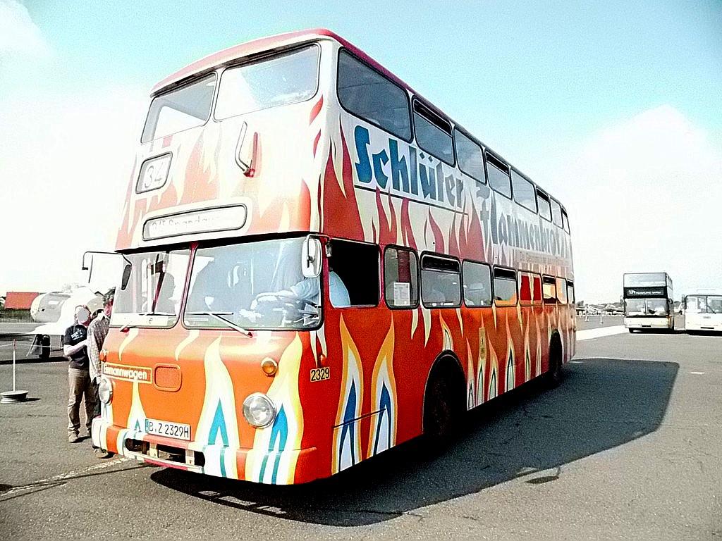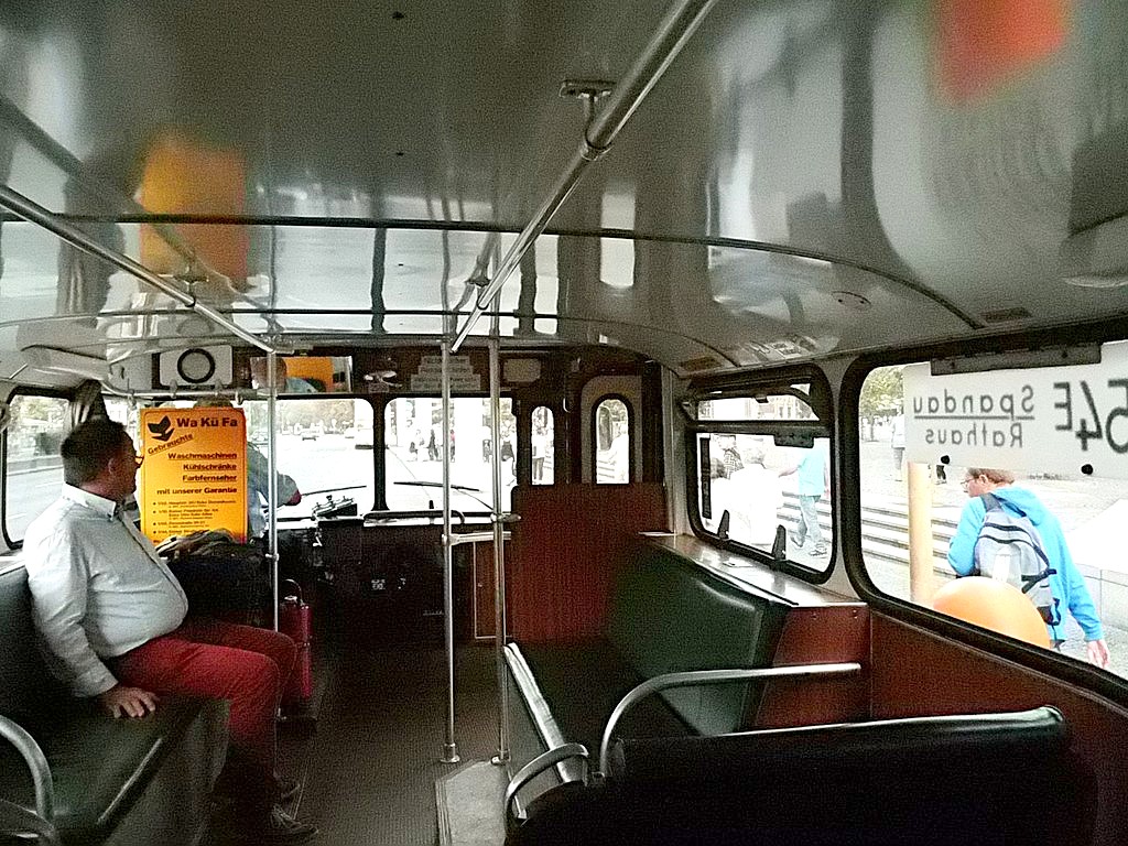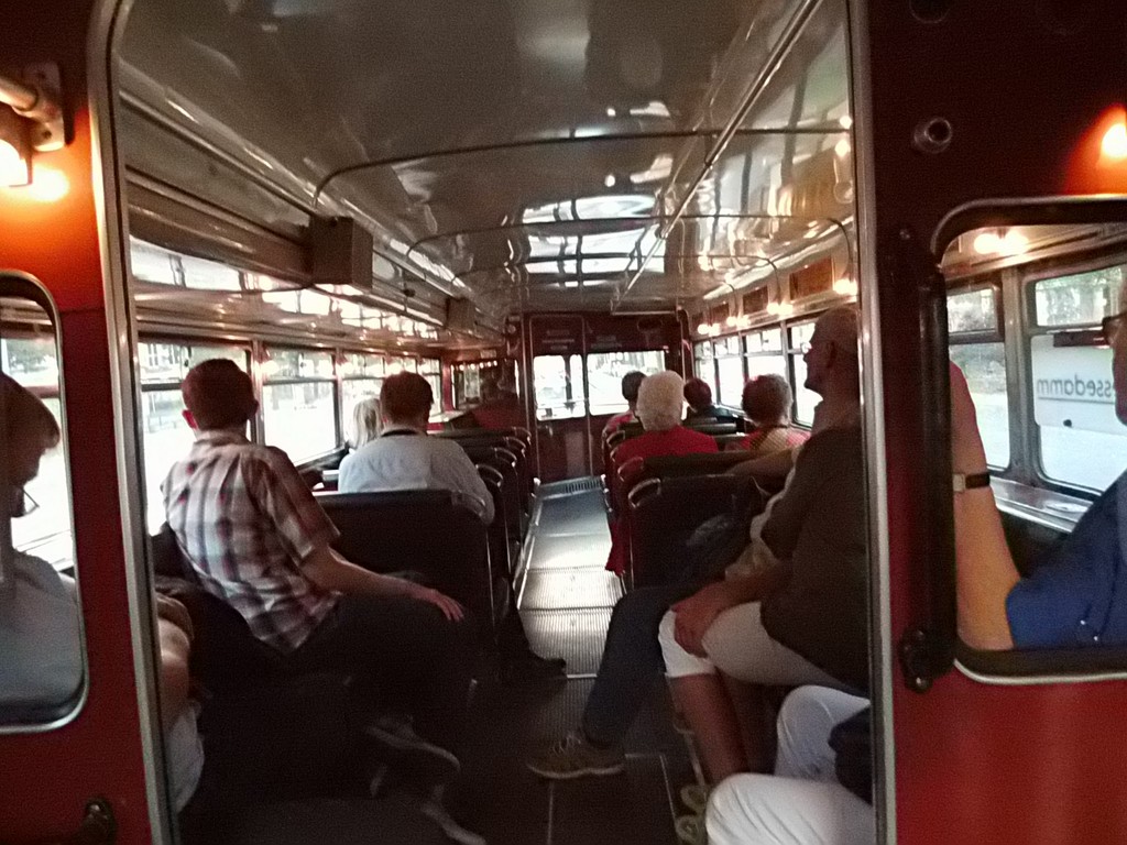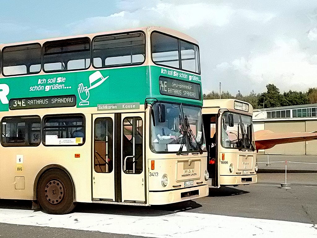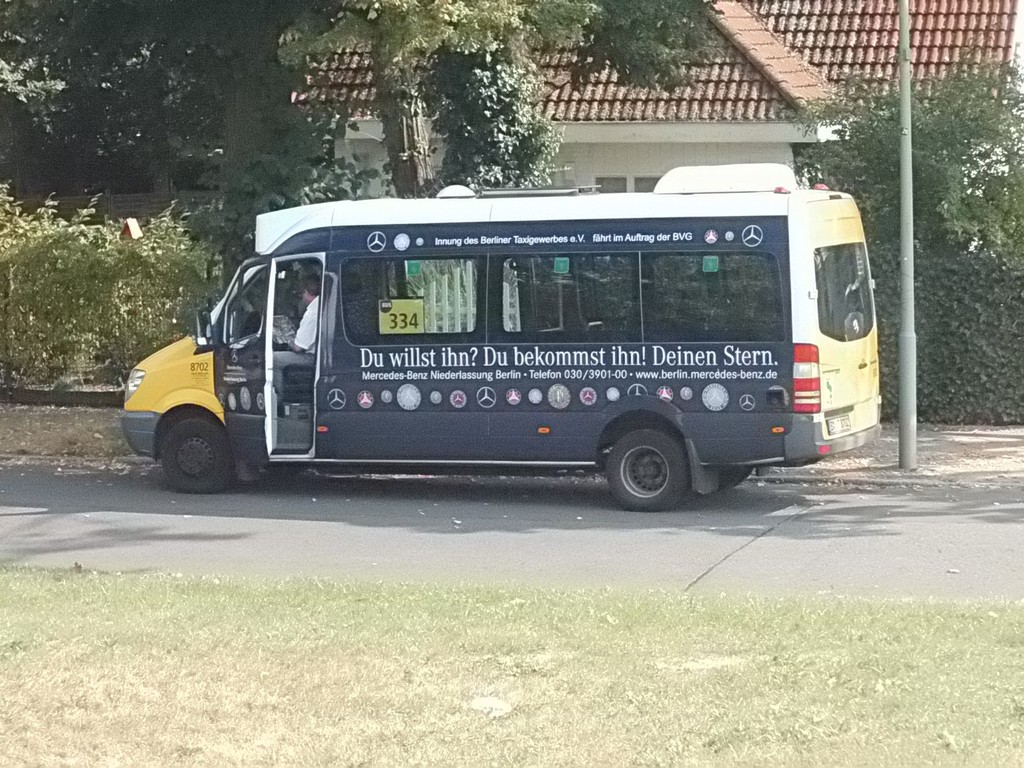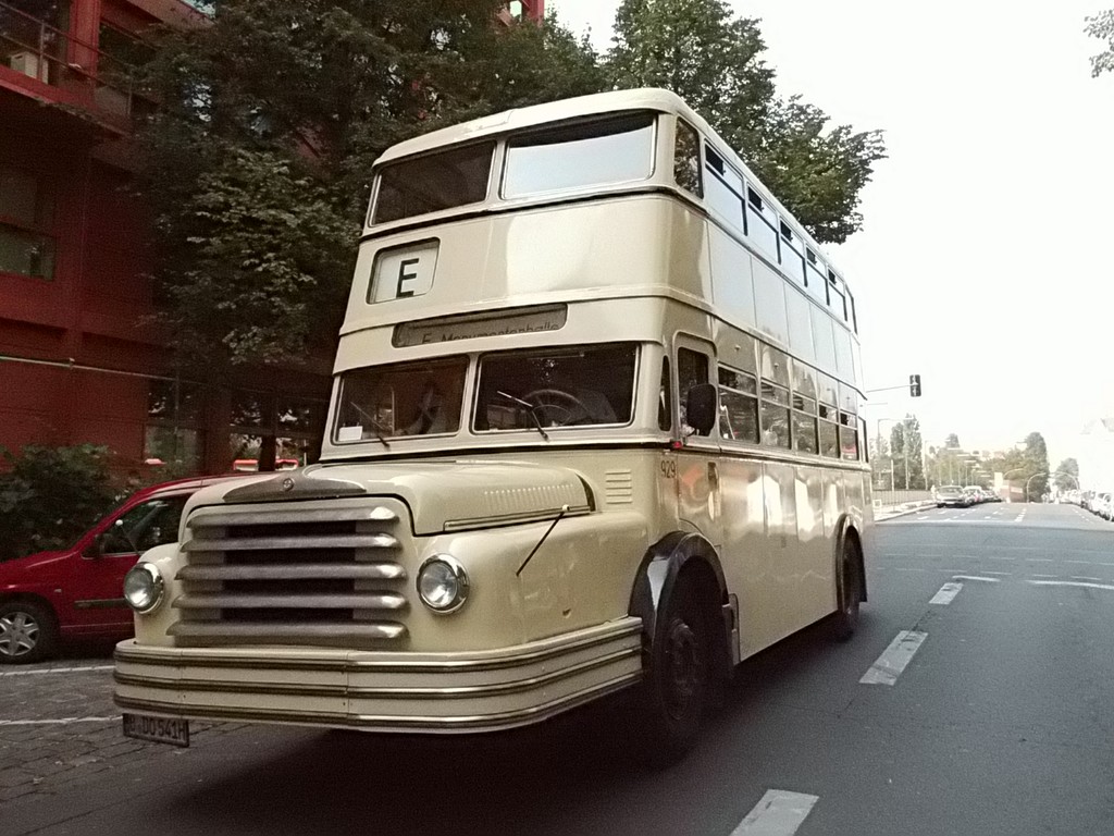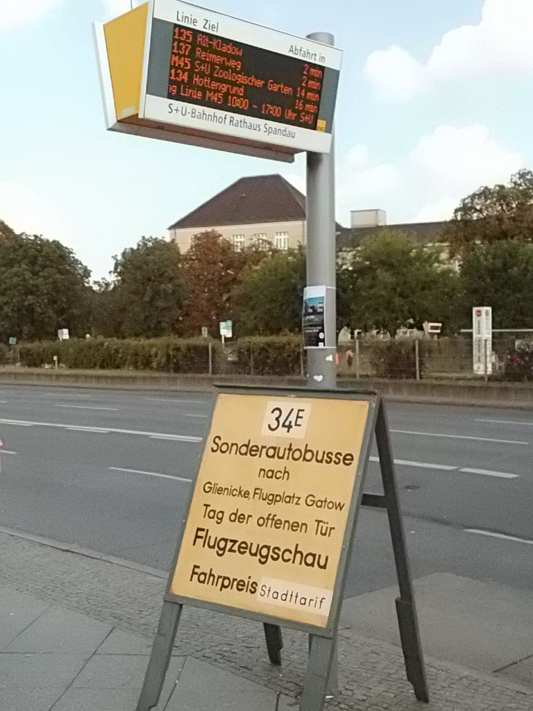 Wieder mal ein Sonntag im September, erst mehrere der Trödelmärkte im Berliner Süden, dann ein Abstecher zur Monumentenstraße. Hier fahren die Traditionsbusse zwischen der Monumentenhalle und dem Verkehrsmuseum, immer Sonntags im September. Standardeindecker vor dem Zugang zur Monumentenhalle des Verkehrsmuseums DO 54 - BVG- Ost Der DO gehört zum Bestand des Denkmlapflegevereins Nahverkehr Preiswertes Sonntagsvergnügen mit Tageskarte AB in Berlin und den Fahrzeugen der BVG, der AG Traditonsbus und Stern und Kreis. Am Bundesplatz begann die Rundfahrt, U 9 bis Berliner Str., U 7 bis Bismarckstr. und mit der U 1 bis Ruhleben. Von da mit dem Bus M45 zum Rathaus Spandau und weiter mit dem 135 zum Luftwaffenmuseum in Gatow . Nur an den Tagen des Flughafenfestes fahren die Busse der AG direkt zwischen Rathaus Spandau und dem Flugplatz über das Kasernengelände, dieser Weg ist sonst nicht zugänglich. Am 07.09.2014 fuhren auch zwischen Ruhleben und Rathaus historische Busse und alles mit normalem Fahrschein. Vom Flugplatz geht es zu Fuß zum Ritterfelddamm und dann mit dem Bus bis Alt- Kladow, jetzt noch ein kleiner Spaziergang und man ist am Schiffsanleger.Von hier geht es mit der F 10 per Schiff nach Wannsee. Von der Anlegestelle sind es nur wenige Schritte bis zum Bhf. Wannsee. Ab hier geht es mit dem 218 und in den Sommermonaten mit einem Bus der AG Traditionsbus zum U- Bhf. Theodor Heuss Platz oder man fährt mit der Bahn wieder in Richtung Innenstadt. Und jetzt noch ein paar Bilder von unserer Tour durch Berlin. Die Hallen des BW Grunewald der Berliner U- Bahn aus dem fahrenden Zug. Eine Gisela im Bhf. Ruhleben. 2556 Am Rathaus Spandau. Mein absoluter Liebling - das Brot war Spitze und ich hab fast 11 Jahre für die Firma gearbeitet. 2329 Büssing DE 1666 3413 Anlegestelle Wannsee - Stern und Kreis Auch der Boden vor einem Bahnhof ist manchmal voller Spannung. D2U |