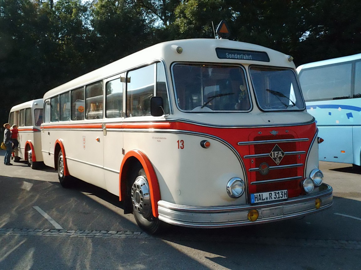 | Unten zwei Beispiele für den fertig restaurierten Bus (links aus Dresden - rechts aus Halle/ Saale) | ||||