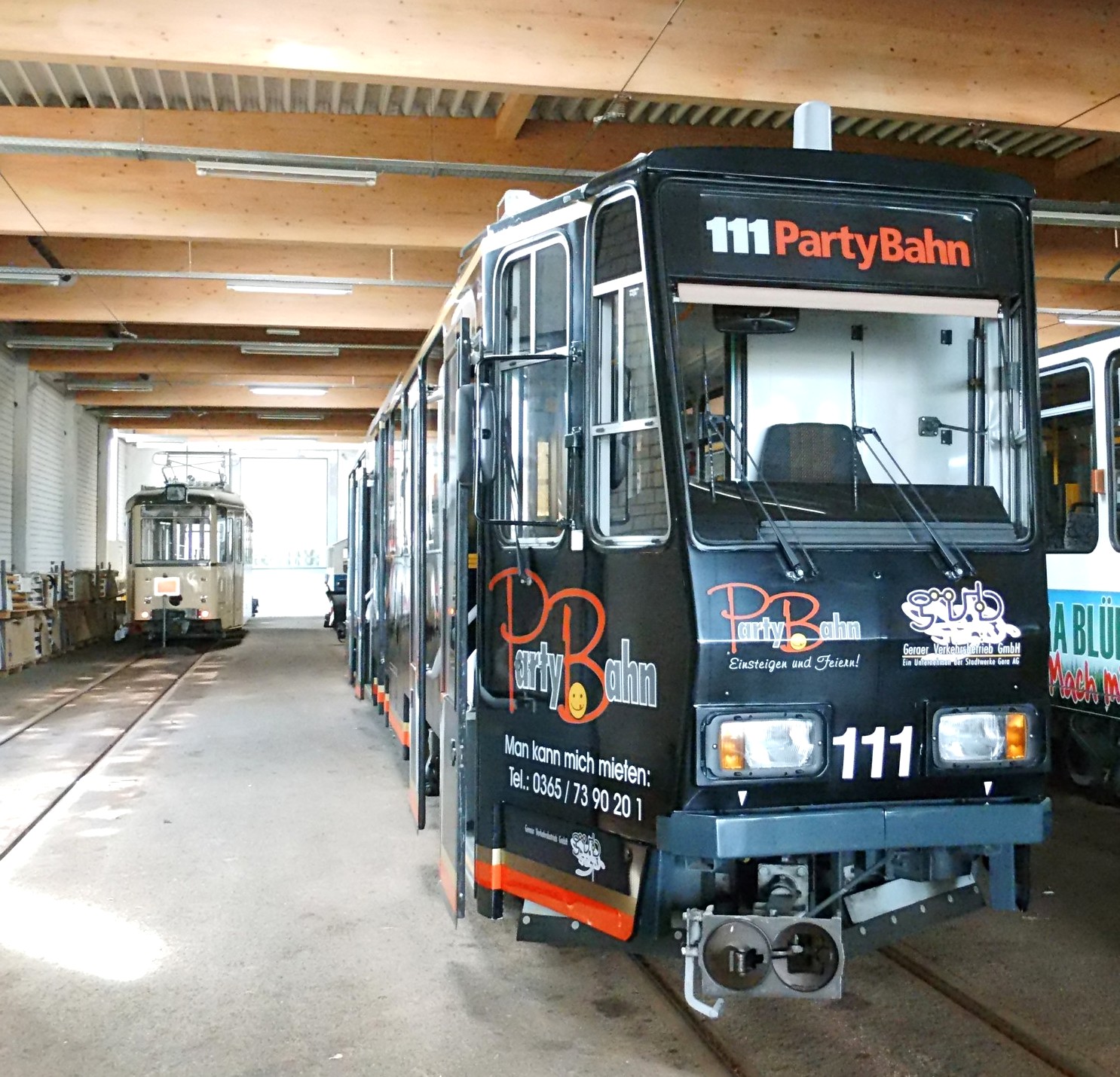 In Gera- Zwötzen beginnt die Tour zum Betriebshof TW 327 aus Kopenhagen in Aufarbeitung für das Sporvejsmuseet Skjoldanaes Holm (DK) |