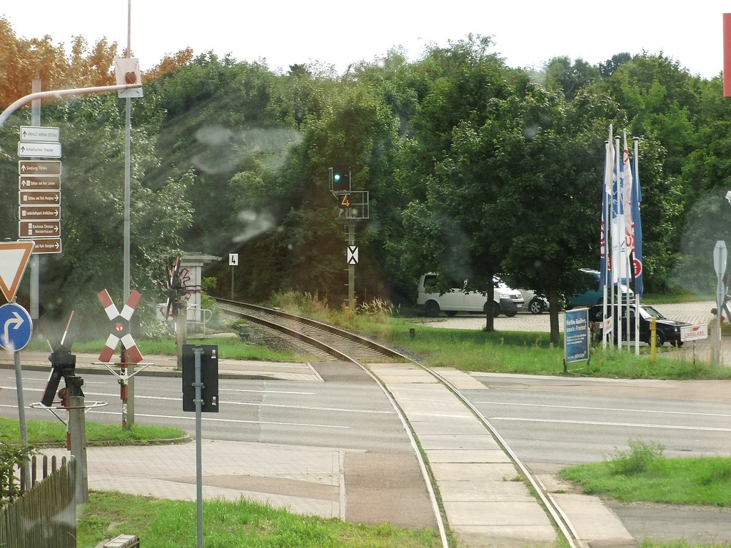 Bahnübergang B 184 und Einfahrtsignal des Hbf. Dessau.
