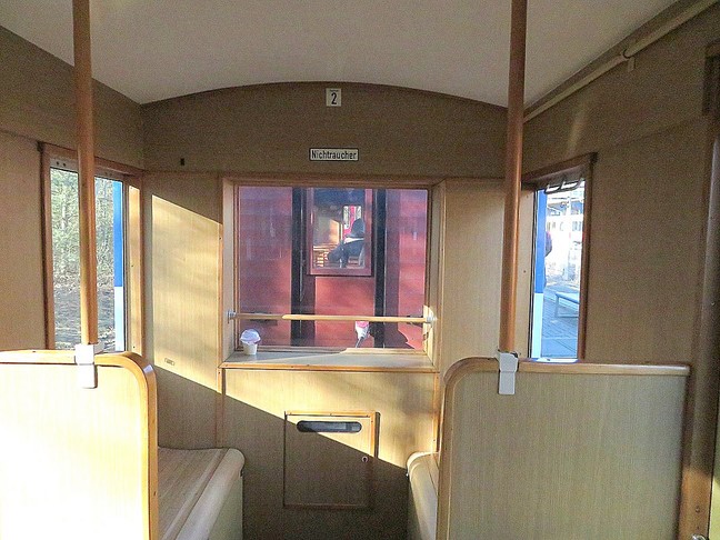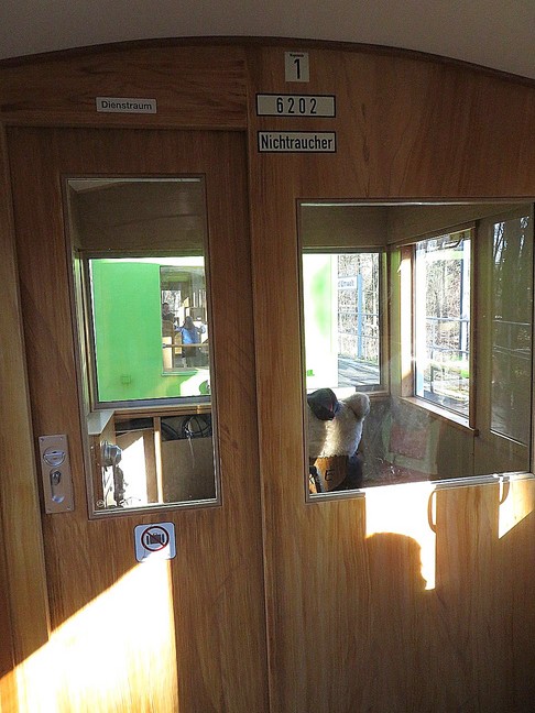 ![]() Kollege "Bär" testet das zukünftige Steuerabteil des Wagens 6202 |