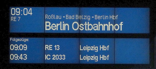 ![]() 9.04 ab Dessau mit dem RE 7 bis Alexanderplatz |
